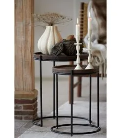 Light & Living Bijzettafel Jairo – Bruin/Zwart – Ø53+Ø45,5cm