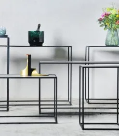 Iedereen is op zoek naar schoonheid. Dat vind je bij de salontafeltjes Tarifa. Het zwart metalen onderstel van de ronde bijzettafeltjes is zo ontwerpen dat ze perfect in elkaar schuiven. Het blad in ruw antique brass heeft een natuurlijke uitstraling alsof het van natuursteen gemaakt is. Het geheel straalt een sfeer van ingetogen luxe uit. Prachtig. Maar niet over the top. Deze salontafeltjes kan je integreren in elke woonstijl.