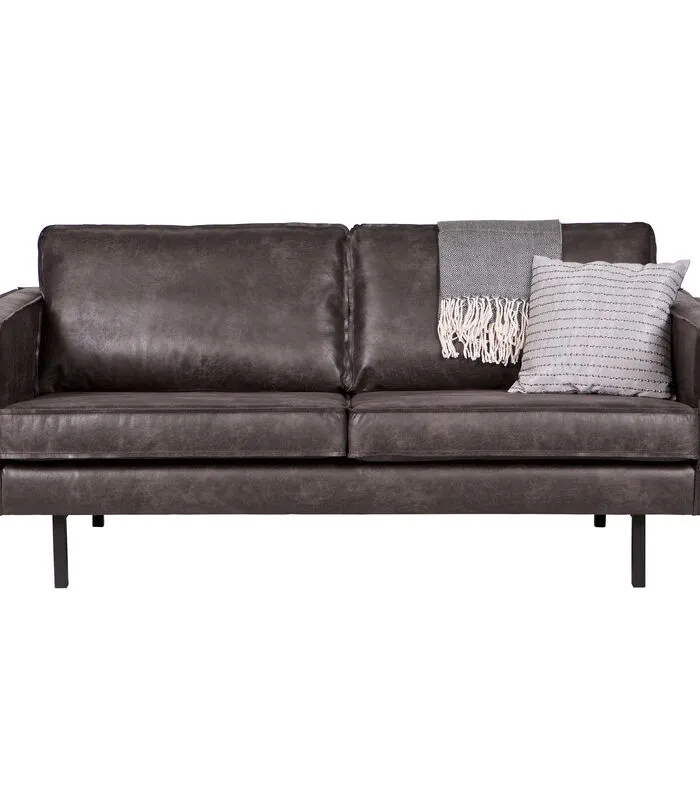 De Rodeo bank is opgebouwd uit een combinatie van massief hout, spaanplaat, polyurethaan schuim met een dichtheid van 25 kg/m3 en een zigzag vering. De zitting bevat een polyurethaan schuim met een dichtheid van 30 kg/m3 (T3037). De rugleuning bestaat uit een combinatie van 70% gesneden schuim en 30% siliconen. Deze Rodeo is bekleed met een lederlook. Onze Copa lederlook heeft een unieke uitstraling en is door het gebruik van leer restanten een duurzame keuze! De lederlook bestaat uit 70% vezels van rundleder, 30% polyester en heeft een Martindale van 30.000. Het materiaal is opgebouwd uit twee onderdelen: de onderlaag bestaat uit gerecyclede leervezels, wat zorgt voor de natuurlijke uitstraling. De bovenste laag is een polyester afdeklaag die het leer beschermt en oneffenheden voorkomt. Hierdoor wordt het een stevige combinatiestof. De microvezel is gebreid van zeer kleine, synthetische vezels. Deze productietechniek zorgt voor de stevigheid en een fijn, zacht gevoel. De stof is zeer kleurvast. Tijdens het gebruik zal het uiterlijk en de structuur van de stof zijn natuurlijke kenmerken meer laten zien, dit verandert niks aan de duurzaamheid en kwaliteit.