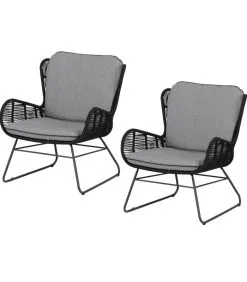 De Grace serie van Exotan is gemaakt van een stalen frame met een matzwarte coating. Het draadwerk is gemaakt van outdoor bestendig touw in een donker antracieten tint. Het rug– en zitkussen wordt bijgeleverd en heeft een donkergrijze kleur. De vulling is van standaard foam en hierdoor niet bestand tegen de nacht of winter, het is aangeraden om de kussens na gebruik direct op te bergen.