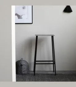 Grote ijzeren barkruk met een minimalistische uitstraling. Hoewel de Rag kruk van House Doctor van ijzer is gemaakt, is het een licht meubelstuk. Plaats er een of meer rond uw keuken voor een gezellige maaltijd of gebruik hem als toonbankkruk, waarbij de voetsteun hem comfortabel maakt. Dankzij het eigentijdse materiaal en de strakke uitstraling is de Rag kruk even interessant als zelfstandig meubelstuk in uw woonkamer of hal.