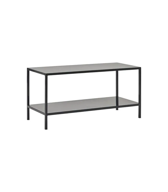Fari van House Doctor is een stalen bijzettafel met een zwart glanzende afwerking. Met zijn strakke, industriële uitstraling creëert hij een mooi evenwicht met uw stoffen bank. De onderste plank is een praktische ruimte voor uw tijdschriften, boeken en misschien een opbergdoos. Om de bijzettafel te personaliseren plaatst u uw favoriete voorwerpen op het tafelblad, samen met uw favoriete tafellamp. Stalen meubelen raken nooit uit de mode en met de Fari–serie kunt u een vleugje drama toevoegen aan uw inrichting door metalen meubelen te gebruiken.