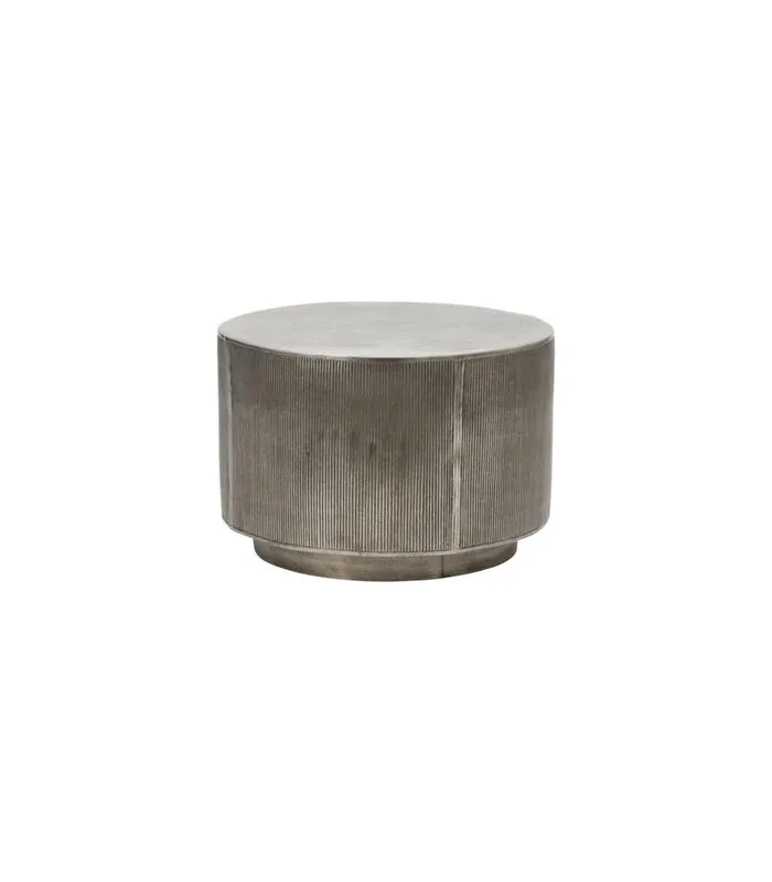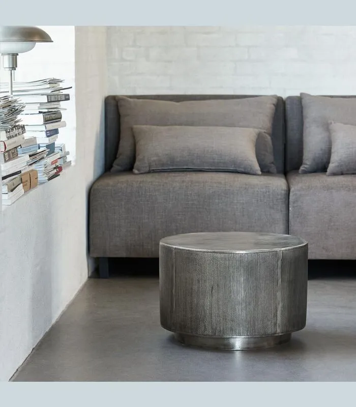 Verfraai uw zithoek en vrijwel uw hele woonkamer met de Rota salontafel. Deze ronde aluminium salontafel, ontworpen door House Doctor, heeft een zilveren tint en verticale groeven als decoratief detail. Een tijdloos ontwerp dat ingetogen elegantie brengt in de ruimte die u het meest gebruikt. Het oppervlak en zijn opzettelijke onvolkomenheden zijn een waardevol bezit. Omlijst de salontafel door er een kleed onder te leggen en personaliseer hem met uw favoriete decor, zoals een glazen vaas. Wij raden aan onderzetters te gebruiken om het tafelblad te beschermen. Ook verkrijgbaar in een grotere versie en in andere kleuren.