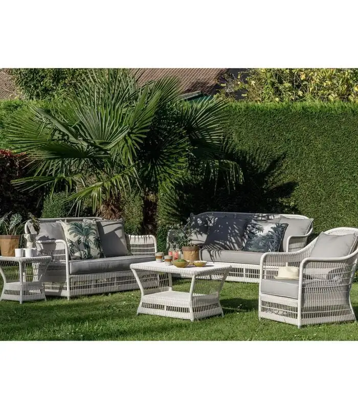De Biarritz rotan buitentafel is gebaseerd op de stijl van het meubilair dat men aantrof op de terrassen van koloniale huizen. Het is ongelooflijk dicht bij wit, vandaar de naam: “”synthetische rotan””. Hierdoor is de tafel zeer licht, optisch zeer luchtig en weerbestendig. Totale afmetingen: hoogte 47 x breedte 77 x diepte 51. Gepoedercoat aluminium frame, HDPE Kunstvezelvlechtwerk. Gemaakt in Indonesië .Onderhoud, niets is eenvoudiger: de structuren van tijd tot tijd en aan het begin van het seizoen een beetje afstoffen met een sopje of een lichte Karcher.