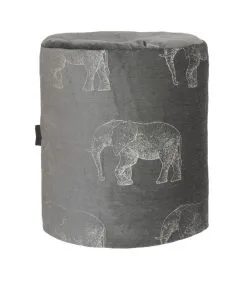 MX HOME Poef Met Grijze Geborduurde Olifanten