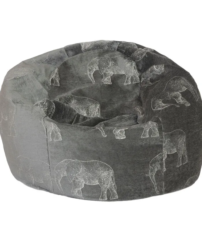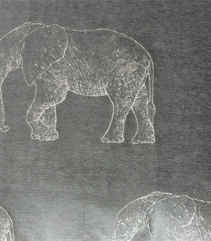 MX HOME XL Poef Met Grijze Geborduurde Olifanten