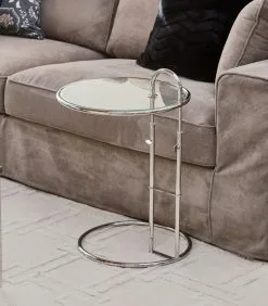 Mooi en praktisch, dat is de Bonham bijzettafel. Een tafeltje gemaakt van mooi, stevig veiligheidsglas, met een ronde, glanzende roestvrijstalen rand. De tafel is in hoogte verstelbaar en door de handige handgreep die boven het blad uitsteekt, pak je de tafel eenvoudig op. Zo kun je overal in huis gebruikmaken van deze handige bijzettafel.