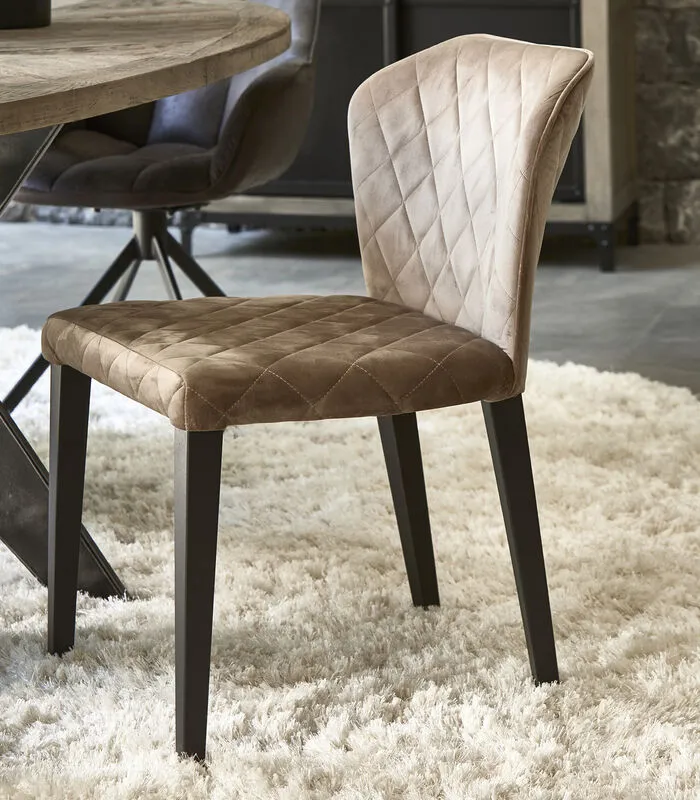 Modern en comfortabel gaan heel goed samen in deze Isabelle eetkamerstoel. Zacht velours voor de luxe uitstraling, een enigszins rechte rug in hoekige vorm. De poten van de stoel zijn van zwart gemoffeld metaal, eigentijds en stevig. Je kunt kiezen uit een aantal kleuren.