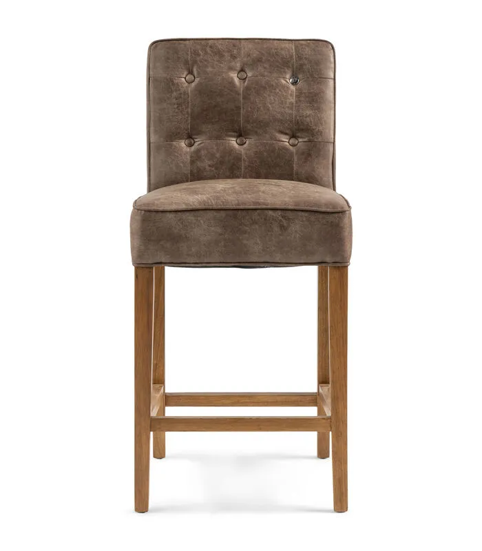 Een comfortabele barkruk voor aan een kookeiland of hoge tafel, dat is de Cape Breton Counter Stool, een klassieke barkruk uit de collectie van Rivièra Maison. De bekleding is van stoer pellini leer. Opvallende details van deze stoel zijn de zilveren knoop in de capitonnering en de jashaak op de carpetleuning. Deze stoel komt in verschillende uitvoeringen, materialen en kleuren.