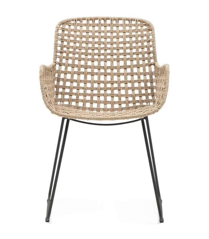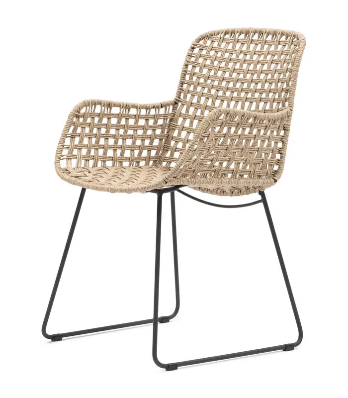 Buiten tafelen of zitten is heerlijk, maar dan het liefst wel op hoogwaardige stoelen, zoals deze eetkamerstoel uit de Jakarta–serie. Deze lijn kenmerkt zich door het mooie, opengewerkte vlechtwerk dat oogt als natuurlijk rattan, maar in werkelijkheid van weerbestendig wicker is. Deze eetkamerstoel heeft armleuningen en een subtiel donker metalen frame.