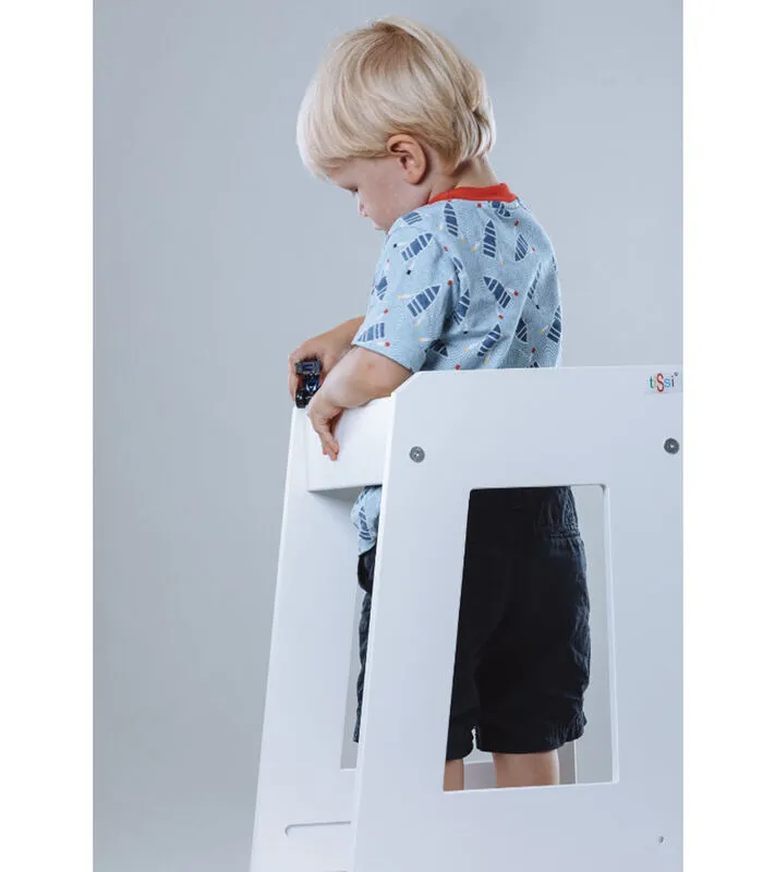 De tiSsi® observatietoren plaatst uw kind in de perfecte positie om u te begeleiden tijdens alledaagse taken. De leer– en observatietoren is ontworpen om met u te interageren en te leren.