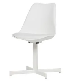 Eetkamerstoel Flow van het merk VTwonen is een moderne stoel met een kunststof kuipje en een metalen onderstel. Het kussen van de witte Flow eetkamerstoel is met een sterke stof bekleed. Dit biedt stevig zitcomfort. Het onderstel van de stoel bestaat uit wit gespoten metaal en heeft een gekruist design. De poten zijn voorzien van kunststof dopjes om je vloer te beschermen tegen krassen.