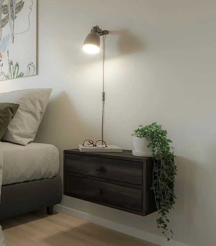 Een modern zwevend nachtkastje met 2 lades is een geweldige oplossing voor de meeste slaapkamers. Functionele lades zijn ideaal om uw spullen op te bergen en binnen handbereik te houden. Dit product is gemaakt van massief Europees berkenhout. Met de schoonheid van de natuurlijke nerf van het hout.