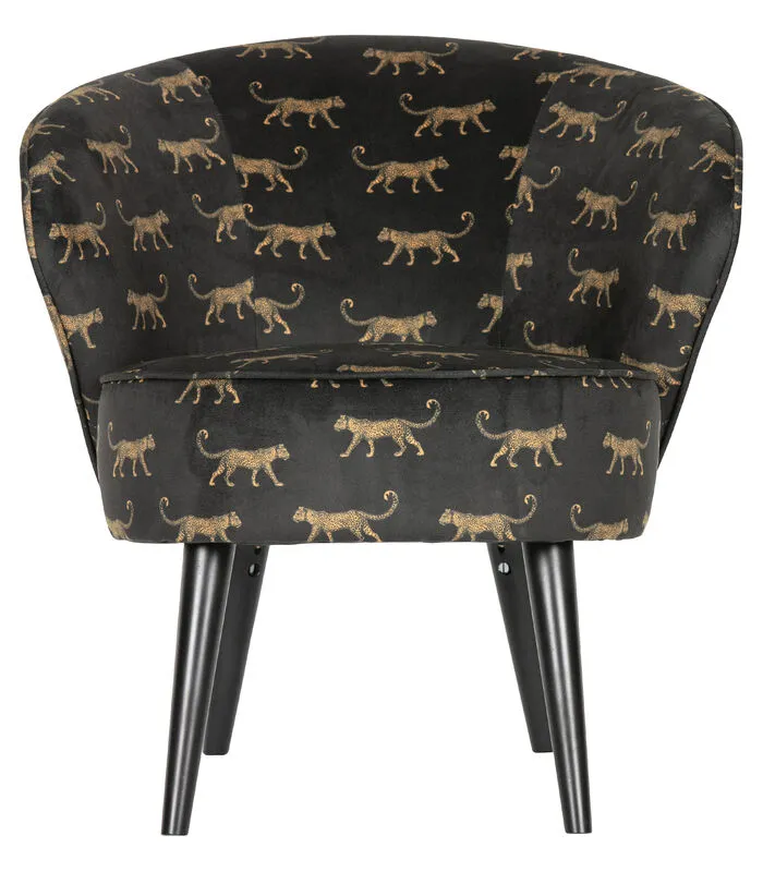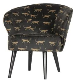 WOOOD Bo Fauteuil 71x69x76 (hxbxd) is een echte eye–catcher in ieder interieur. De Bo Fauteuil is en prachtige fauteuil bekleed met een 100% polyester stof en heeft een gave panter print. De poten zijn van berkenhout met een zwarte afwerking. . Artikelkenmerken
