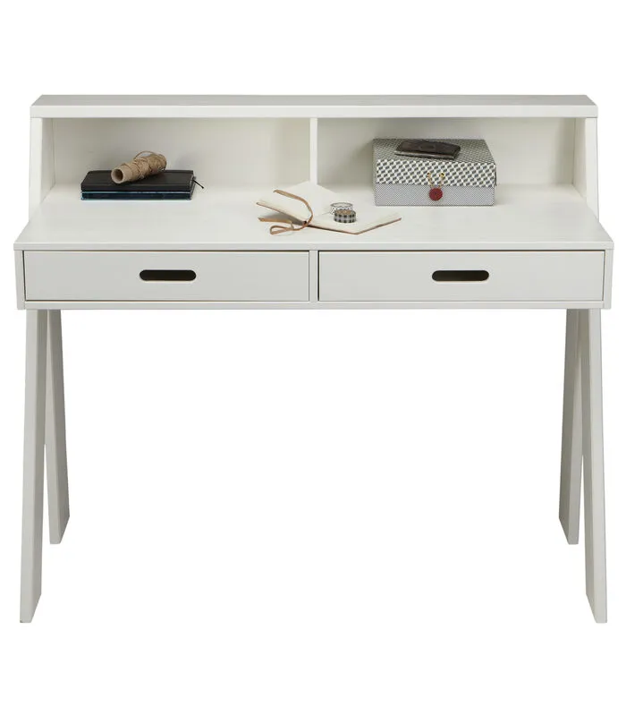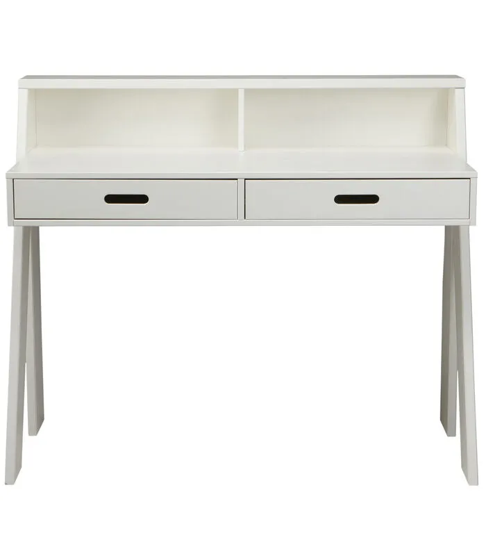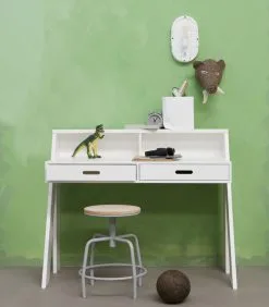 Dit frisse, moderne bureau Connect uit de collectie van het Nederlandse merk WOOOD is gemaakt van Massief, FSC gecertificeerd, grenenhout voorzien van een witte afwerking. Het bureau beschikt over een twee lades (hxbxd) 6.5×47.5×40 cm met uitgefreesde en afgeronde handvaten. Handig voor het opbergen van je huiswerk of andere zaken die je liever niet in het zicht hebt liggen.