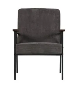 WOOOD Sally Fauteuil 87x65x82 (hxbxd) is een Comfortabele fauteuil. De Sally fauteuil is gestoffeerd met een stevige ribcord stof in de kleur Antraciet en heeft een zwart gelakte metalen frame. De bruin gelakte houten armleggers geven deze fauteuil een stoer, trendy en casual uiterlijk. Artikelkenmerken