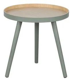 De WOOOD bijzettafel Sasha 41x41x41 cm is een hout tafeltje met een rond bovenblad met opstaande rand en 3 pootjes. De buitenzijde van de opstaande rand is in het jade groen gelakt en de binnenzijde in een licht blank houten kleur. De diameter van het tafelblad is 41 cm en de hoogte is ook 41 cm. Het bijzettafeltje Sasha kan in elk interieur geplaatst worden van modern tot klassiek. Artikelkenmerken
